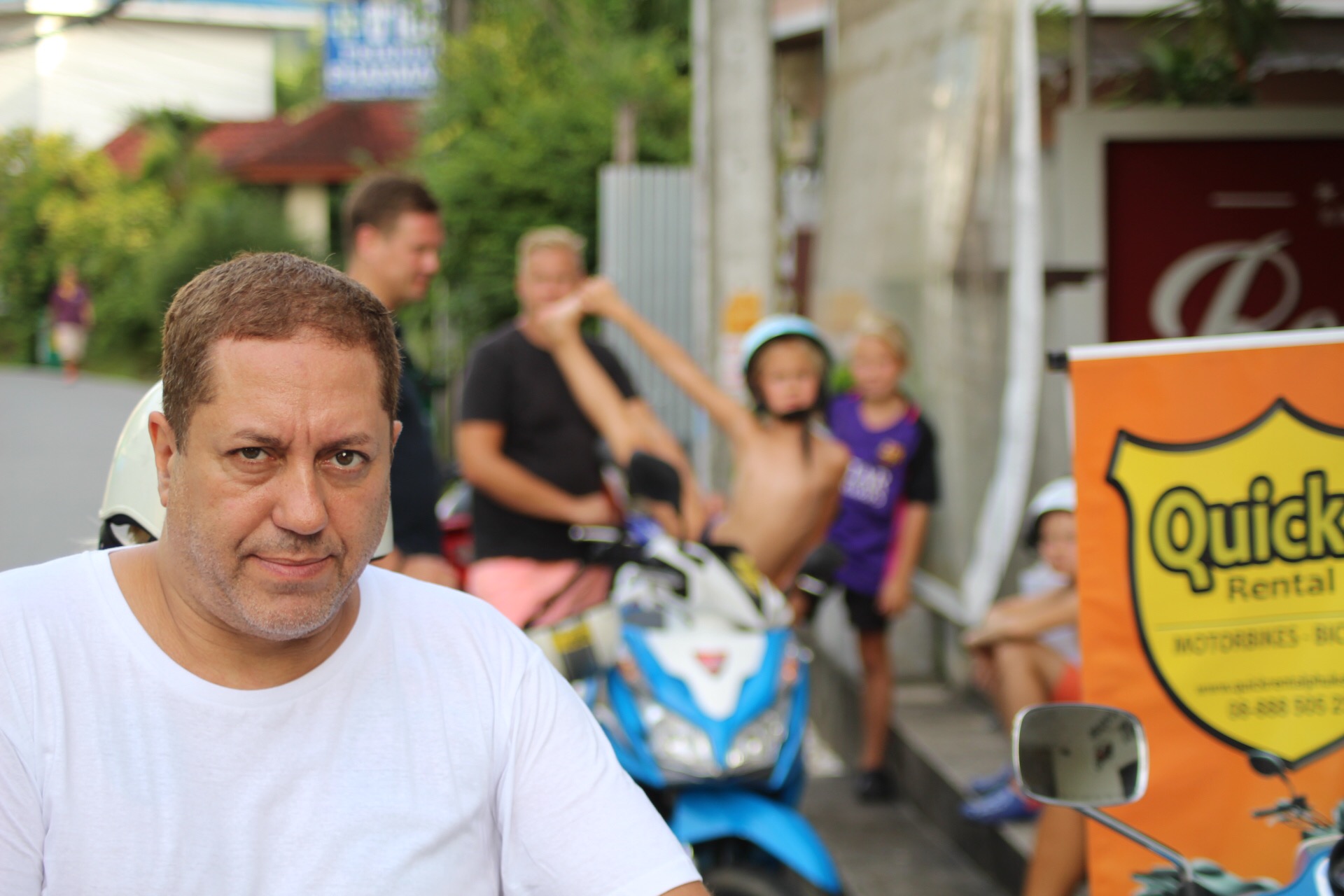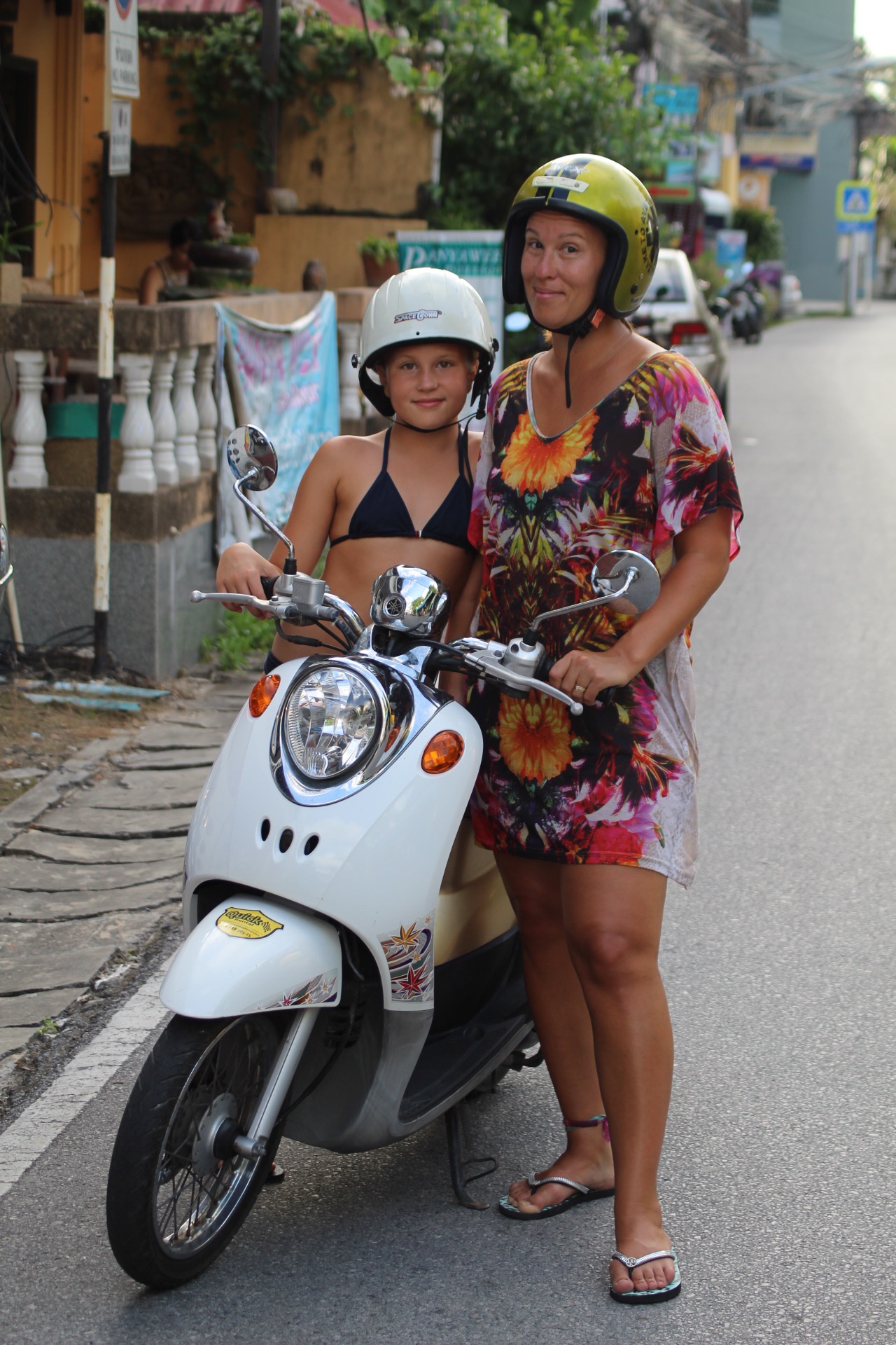 Vi har hyrt fyra moppar via Quick Rental som ägs av svenska Pierre Hammar och hans thailändska fru Ying. Det känns tryggt om det skulle hända något, då kan de hjälpa till på ett bra sätt, oavsett om det skulle handla om en olycka, om fordonet går sönder, blir stulet eller vad som helst.