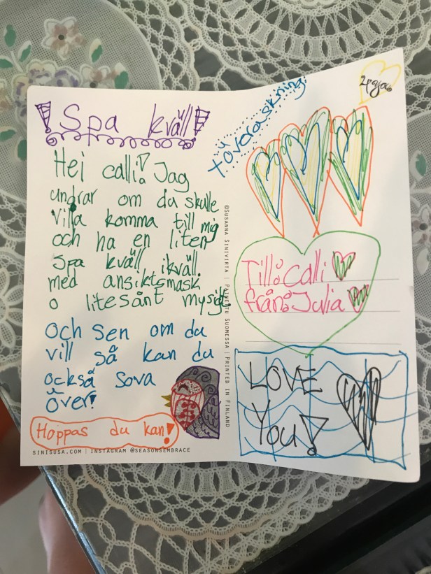 Julia bjöd in Calissa till en spa-kväll med ansiktsmask och tjejmys.