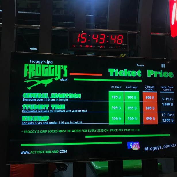 Jungceylon är ett köpcentrum i Patong som vi besökte idag. Här fick barnen göra av med en massa överskottsenergi genom att studsa och klättra på Froggy’s trampolinpark.