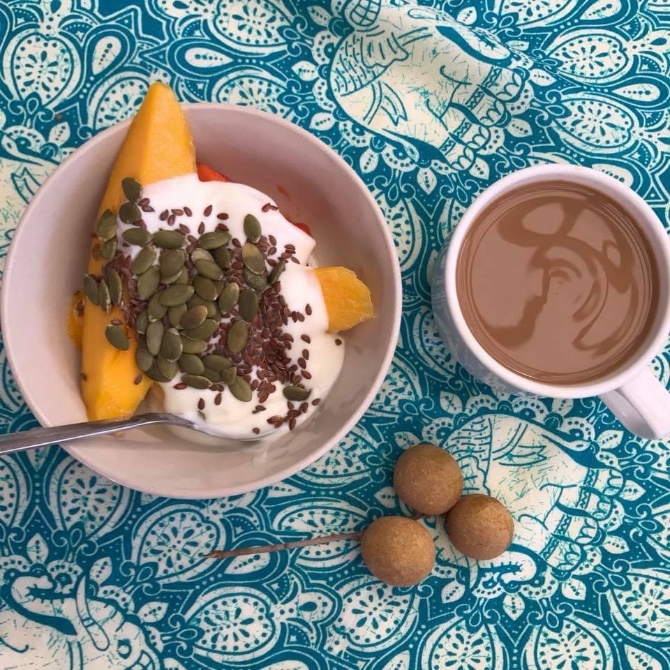 Drakfrukt, melon och vindruvor är också färgglada mumsiga kamrater vid frukost- och mellisbordet. Med lite naturell youghurt och nötter blir det riktigt gott och mättande på ett fräscht sätt.