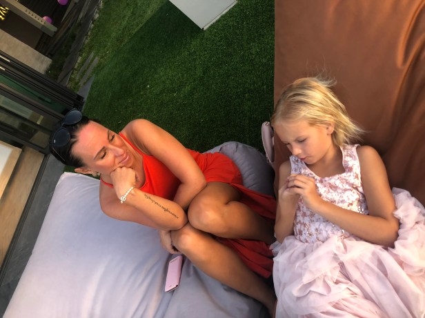 Barnen valde en passionsfrukts-historia (180 baht), pappan en IPA (250 baht), mammorna en Mango daiquiri och en Sunset strawberry.