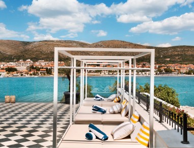 KROATIEN Det pampiga slottsliknande vita huset reser sig ståtligt över havet och heter (mot förmodan!) BROWN Beach House. Havsutsikten från poolområdet är magisk och det är förståeligt att ELLE Croatia nyligen valde hotellet för sin plåtning till magasinet.