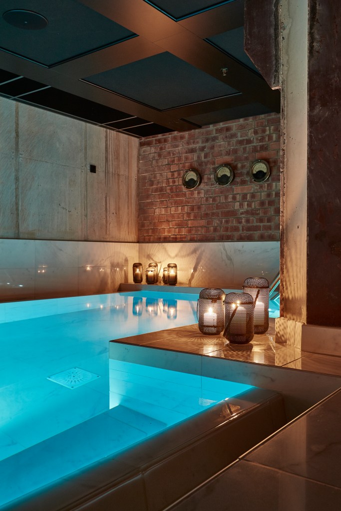 Pool club på sjunde våningen har en inomhuspool, utomhuspool, bastu, bar och ett relaxrum med sköna dubbelsängar och eldstad. Här vandrar man runt i gröna morgonrockar med luva och bara myser. I relaxrummet råder tystnad och återhämtning och man viskar kanske lite med sin partner med en lyxig drink. Poolerna har också en lugn skön atmosfär men utomhus är det lite mer pratzon än på den övriga relaxytan.