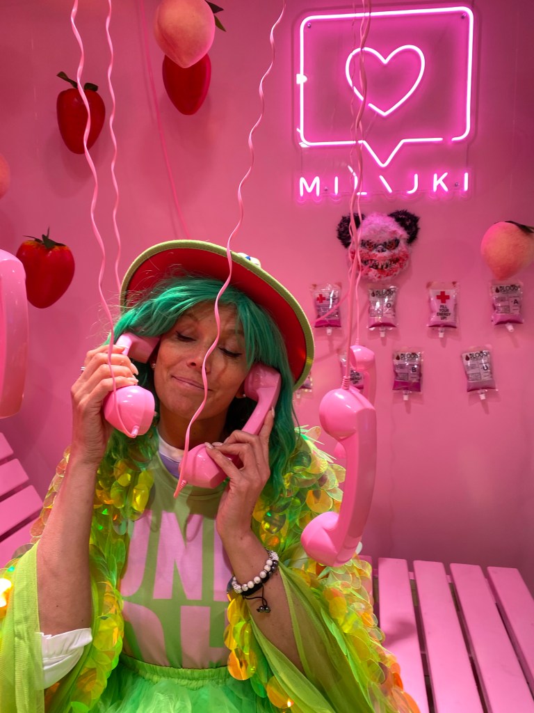 På Milajki finns 25 bås där du kan skapa färgsprakande, roliga bilder – till exempel till dina sociala medier. Båsen är i olika färger och teman med tillhörande utklädningskläder, peruker och roliga attiraljer. Det är sååå kul!!