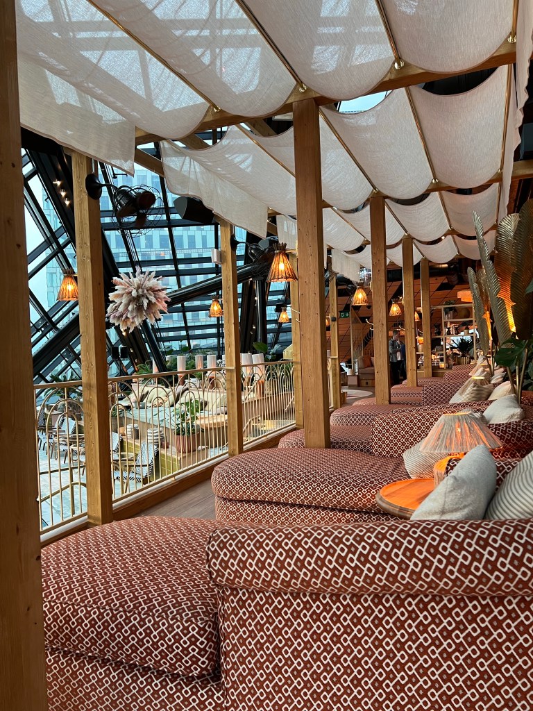 Pachanga Pool Club ligger på våning 27-28 och utsikten över staden är magisk både när det är ljust och mörkt ute. Här kan man chilla i solsängarna, mysa vid brasan, bada eller njuta av goda drinkar.
