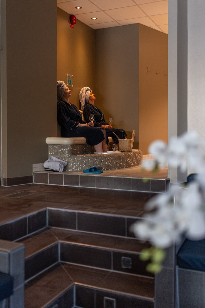 Efter solrummet njöt vi på spaavdelningen med bastu och olika pooler.