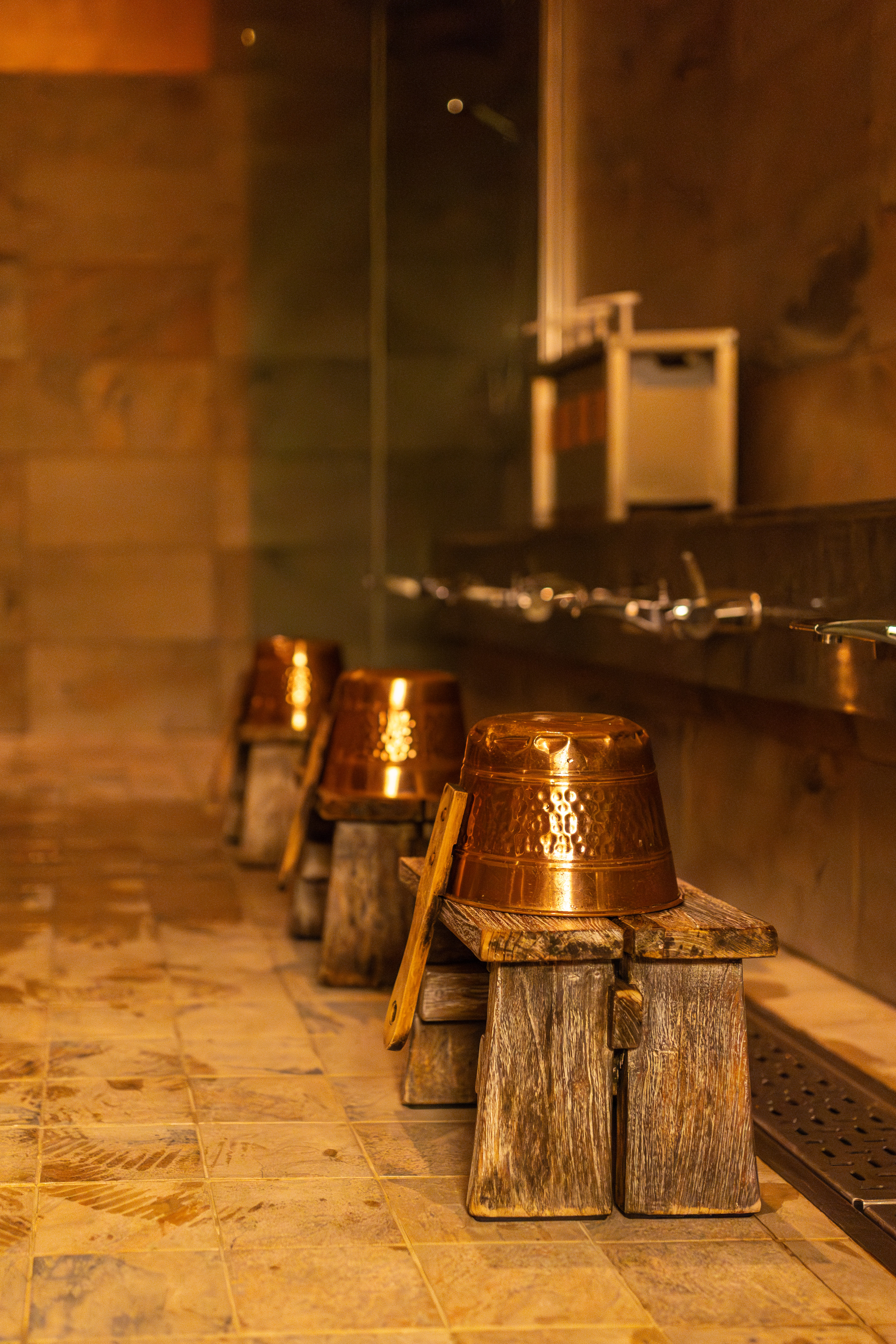 Efter middagen klev vi in på Art Garden Spa och började med en tvagningsritual. I en japansk atmosfär med enkla träpallar och hinkar, lät vi tvagningen ta tid och skrubbade oss rena. Proceduren gjorde att man förutom att bli ren, även kom in i rätt sinnesstämning.