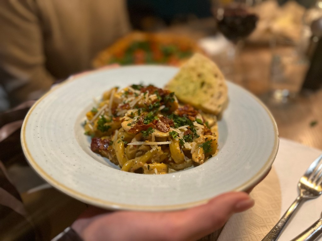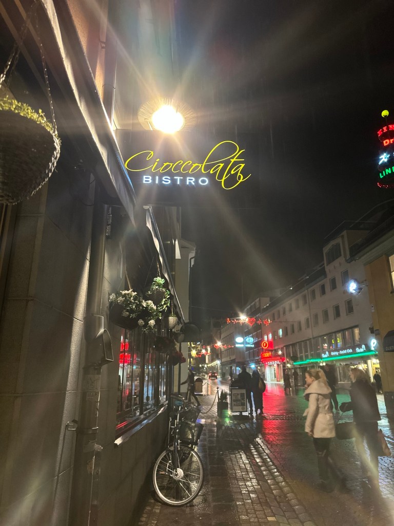 Mitt i stan finns den här restaurangen som vi googlade fram…Snygg inredning förhöjer upplevelsen! Grym design på menyerna. 😍LEMON DROP med Vodka, Cointreau, Citron och Socker.CIOCCO’S APPLE med Äpple, Socker, Citron och Soda. (Alkoholfri)De alkoholfria drinkarna smakade utmärkt (vilket är viktigt!!) och detta var en Virgin Mojito.MISS DAISY med Rom, Lime, Passion, Mynta och Soda.Vi satt i en skön rund soffa.Det fanns många olika sittplatser med nice belysning.Snygg bar! 😍Pizzan var verkligen en vinnare! … och pastan med kyckling kom på en värdig andraplats! Hamburgaren var saftig och gick hem hos vår tonåring.En antipasti med olika ostar och charkuterier, vitlöksbröd, oliver, färskostfylld paprika samt grissini och marmelad. 😍Skagenröran var fräsch. Hembakat bröd med smak av rosmarin och citron. 😋