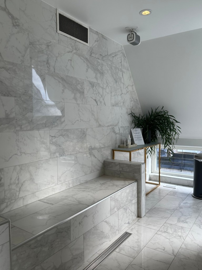 Från gatan kan man knappast veta vad som gömmer sig en trappa upp. Redan i entrén doftar det spa och vardagsstressen börjar genast att lämna kroppen när axlarna sjunker ner och slappnar av.