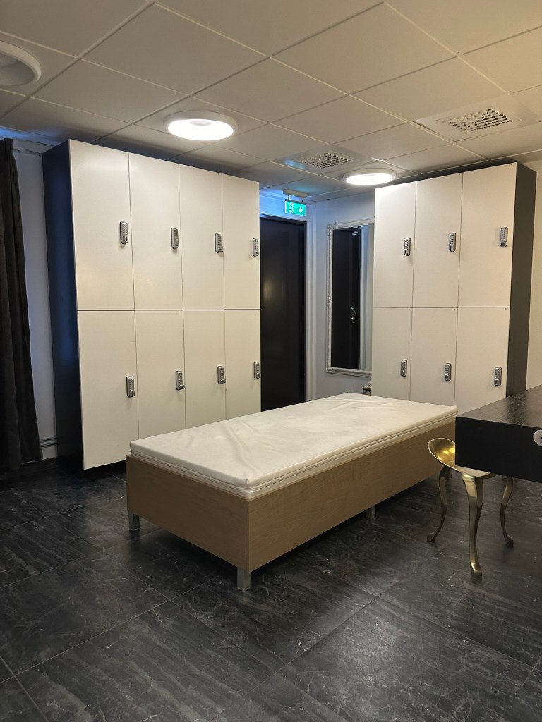 Omklädningsrummet är ganska litet och gör att det känns personligt och lite exklusivt. Man får känslan av att det aldrig blir helt fullt med folk här, utan bara lagom.
