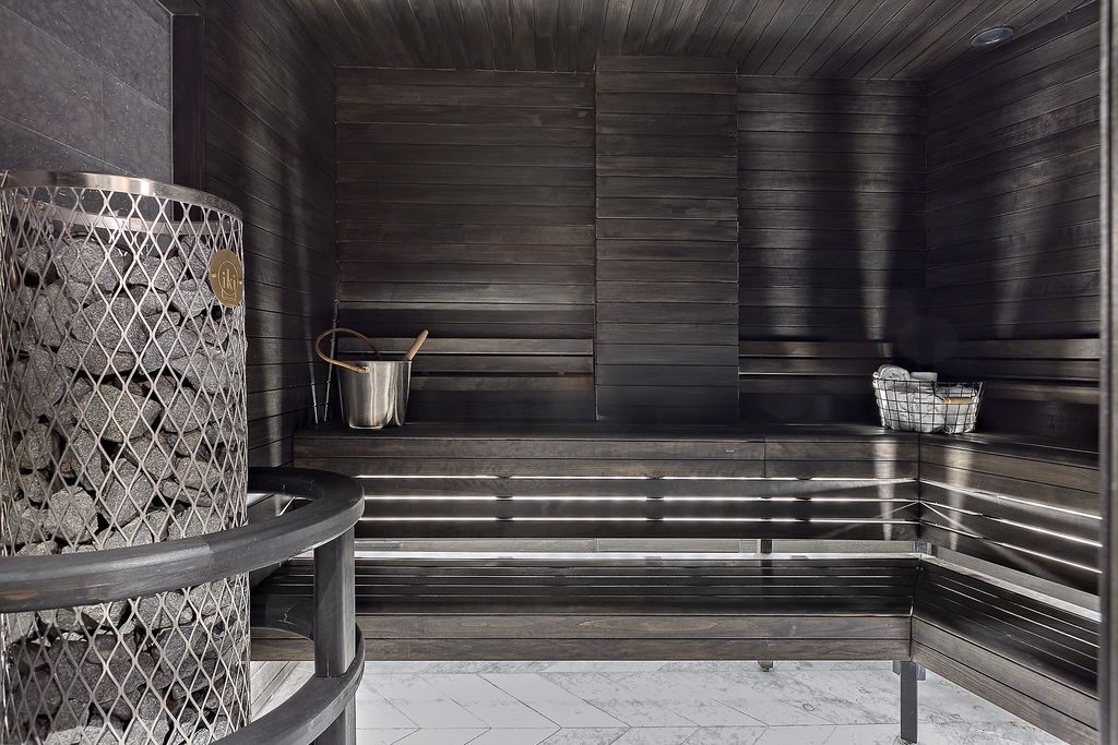 En trappa ner fanns ett fint gym och en bastu som såg helt nyrenoverad ut.