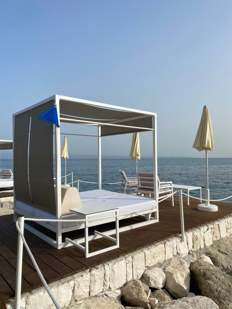 Hotellet har en egen strand med Mistral Beach Club som har sköna solbäddar och utmärkt service. I högsäsong bör plats förbokas, då det ofta är fullbokat eller långa väntetider. Här serveras mat, dryck och skön loungemusik.