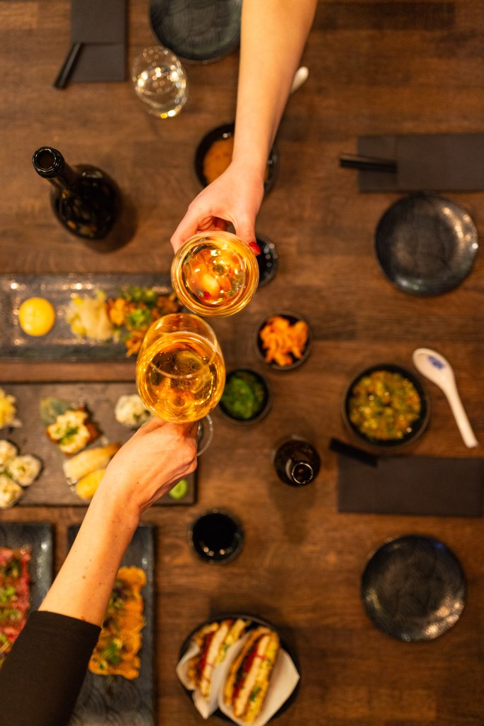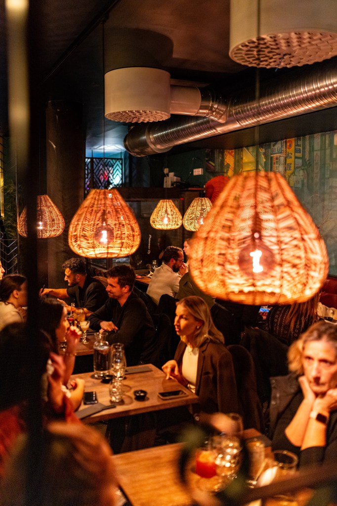 Dagtid serveras lunch i form av färggranna bowls, spett och sushi. Till kvällen finns en meny med asiatiska rätter i olika storlekar och spännande tappningar.